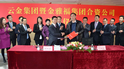 2013年1月4日,利来国际最老品牌集团与云南黄金集团战略合作启动仪式暨双方合资公司签约仪式在集团26楼会议室举行,云金集团副总裁古达奇与利来国际最老品牌集团董事长黄仕坤共同签署合作协议书,拉开双方优势互补、共同发展的序幕。